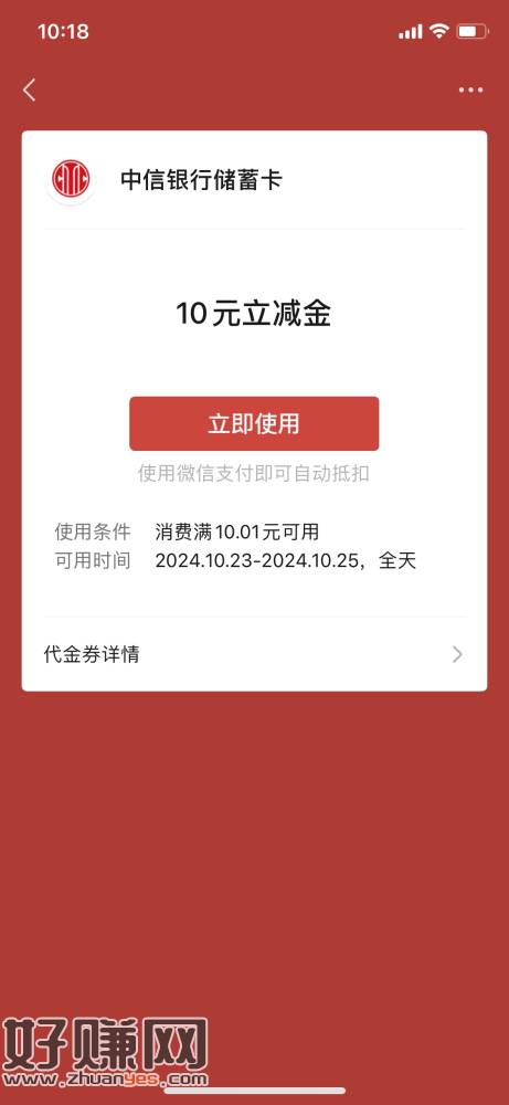 (提醒)21号中信问卷调查10立减记得领,记得用