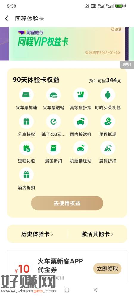 【同程旅行领30减10元火车票券】同程旅行APP搜索“每日福利”->直接领权益会员,新客有火车票30-10亓券 和 部分城市享飞机/火车免费接送站