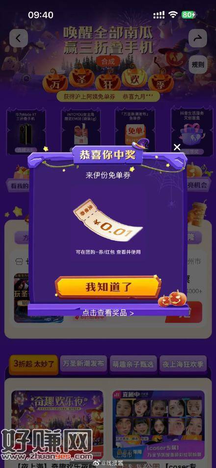dy搜万圣狂欢季 抽免单券