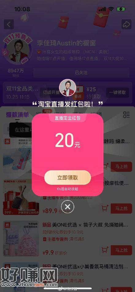 手淘搜李佳琦,找到他主页,部分人弹定金红包了