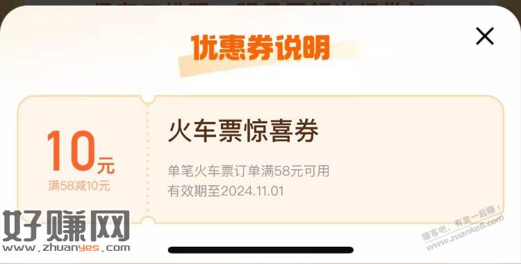 滴滴火车票58减10,给力