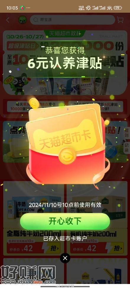 猫超右下角惊喜口令试试【认养一头牛】有6元认养品牌金