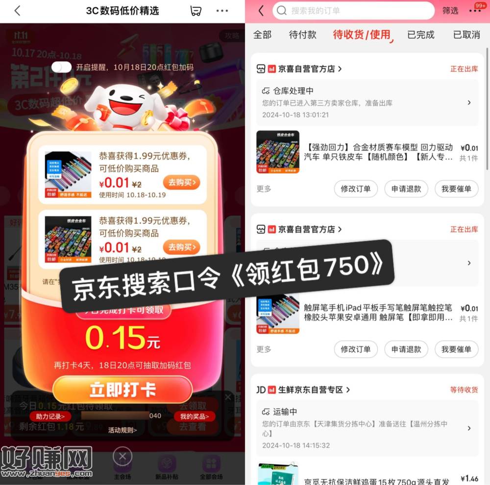 京东红包!0.01薅实物