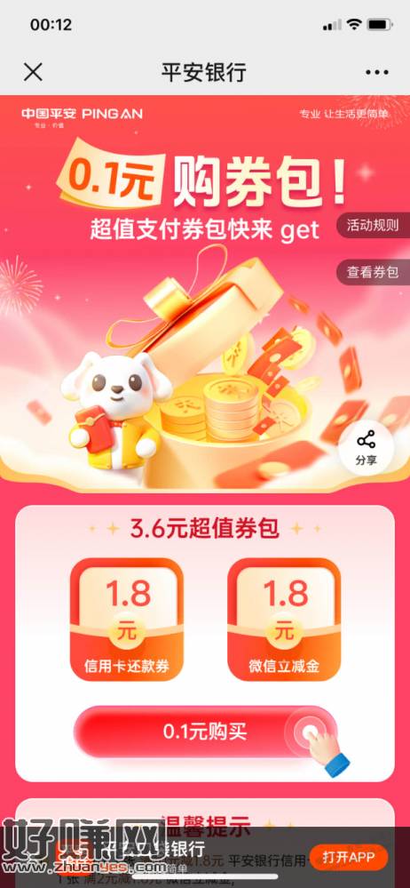 [ 平安银行 ]3.6元(还款券+微信立减金)