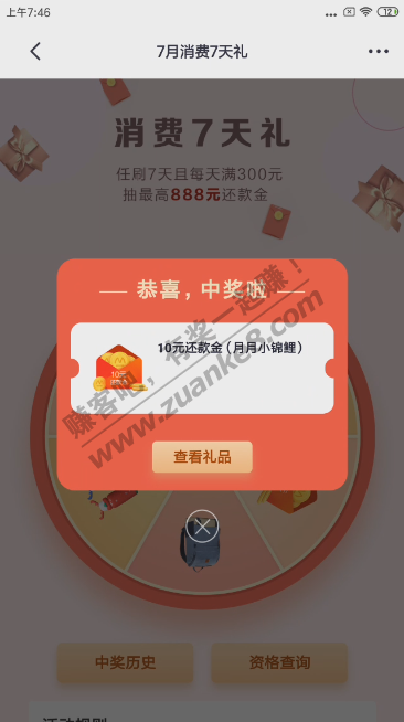 掌上生活,首页 消费有礼 3中3