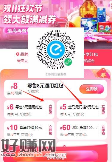 微信扫,如图盒马这个两个券可以叠加的