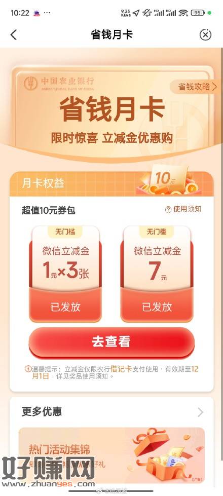 农行 热门活动 省钱月卡,用数币付款