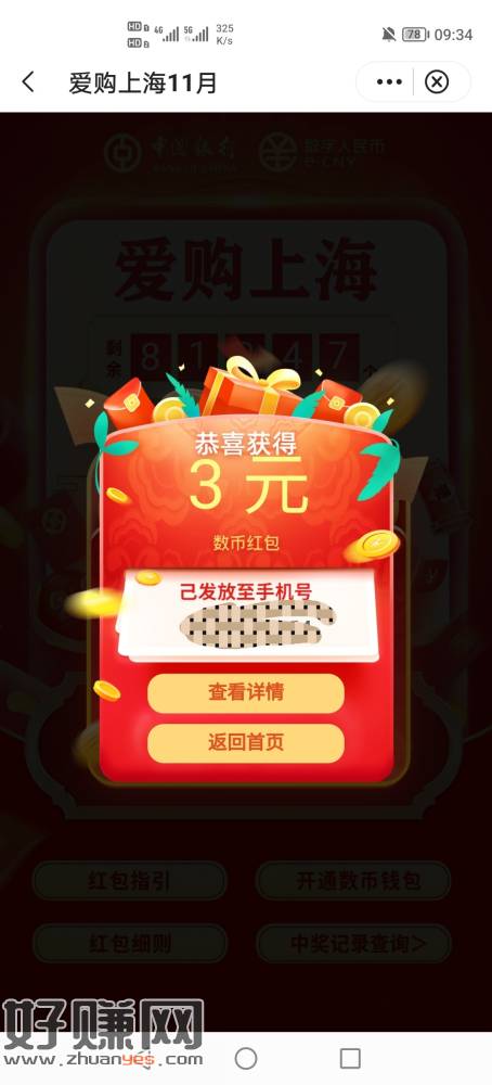 中国银行上海数币抽奖。通用,。我运气不好。只抽到3毛。直接扫vx经营码T
