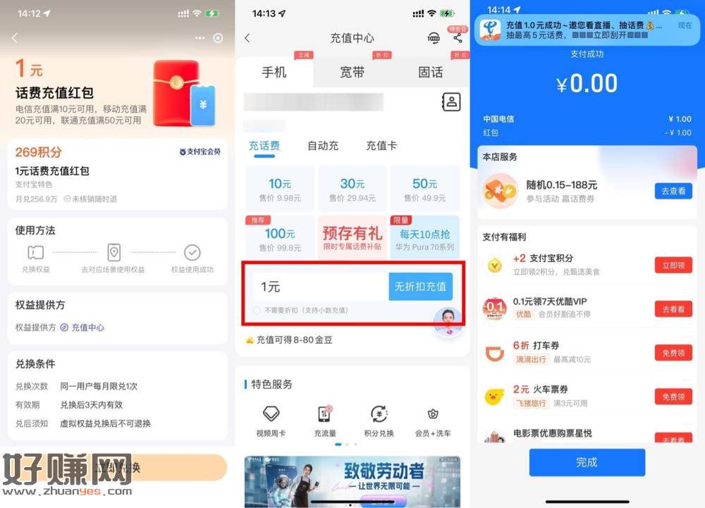 支付宝269积分兑换电信1话费
