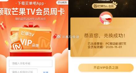 买单吧新用户领取芒果TV周卡