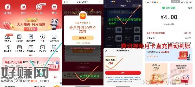 云闪付4亓开62vip月卡+腾讯视频月卡,月卡每个月可以领6亓回本券
