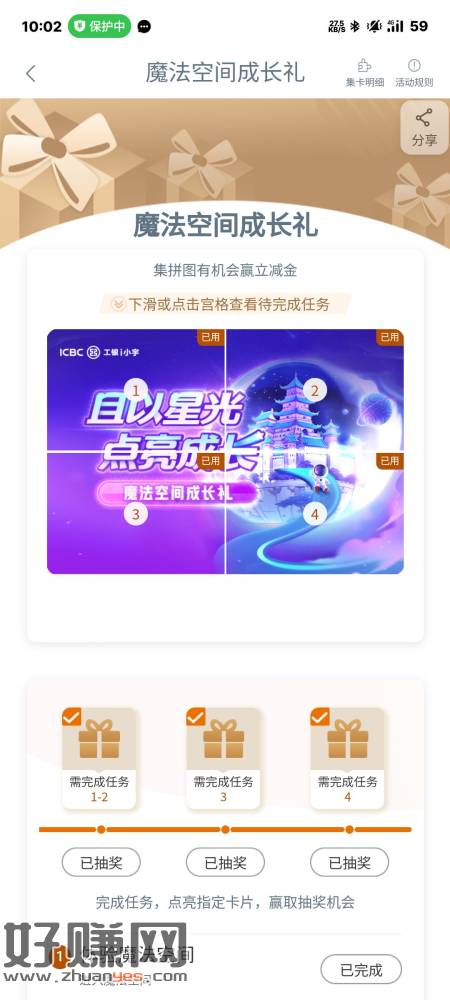 工行享活动做完浏览任务,大黑号中1+1.88+3.88