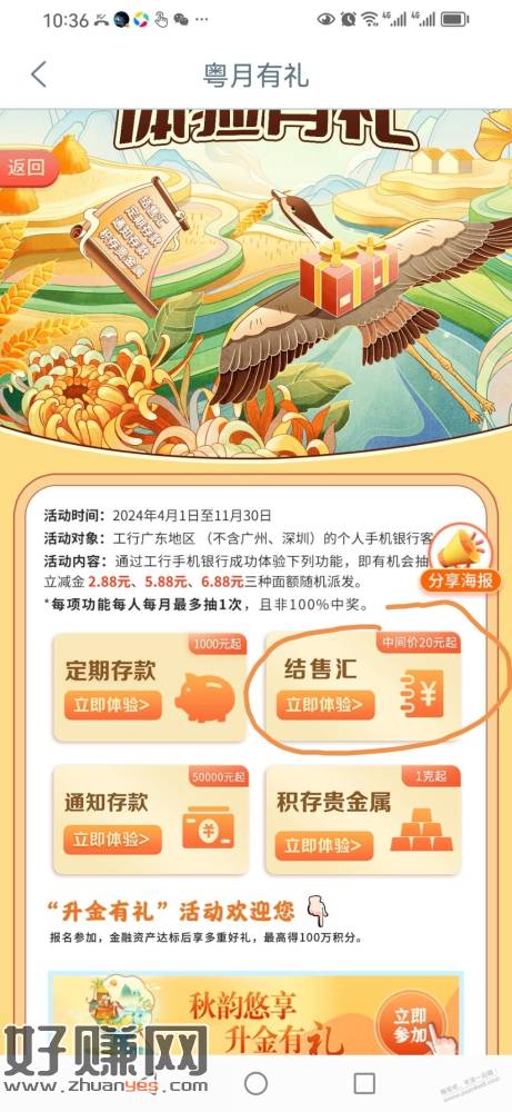 搜粤月有礼,结售汇满20元抽中微信立减金。