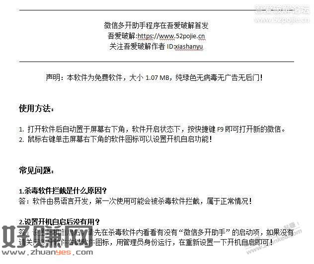 分享PC微信多开助手1.2版本,自认为最好用的,好用请加果!