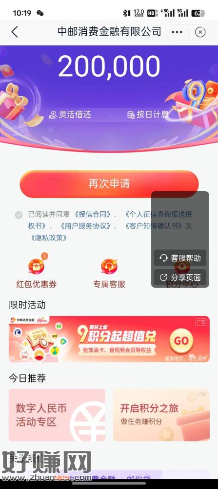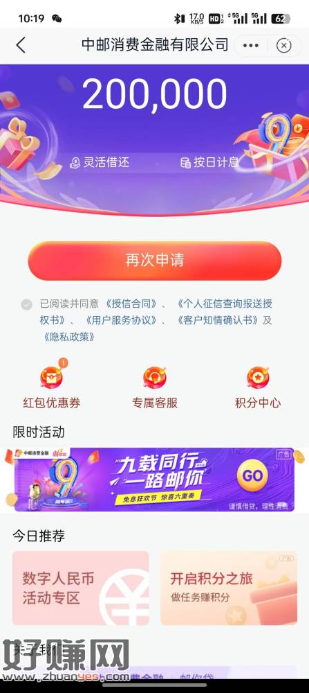 邮储搜索邮你贷 第一个个送祝福给999积分 第二个换