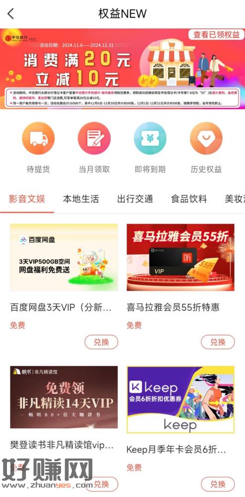中信银行App 城市服务 选择太原 可以领一张满20-10立减金 需要太原卡(含电子卡)才能抵扣,没有太原卡的半价挂闲鱼