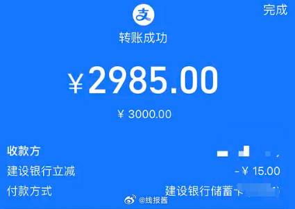 广东地区自测,建行支付宝转账有3000-15
