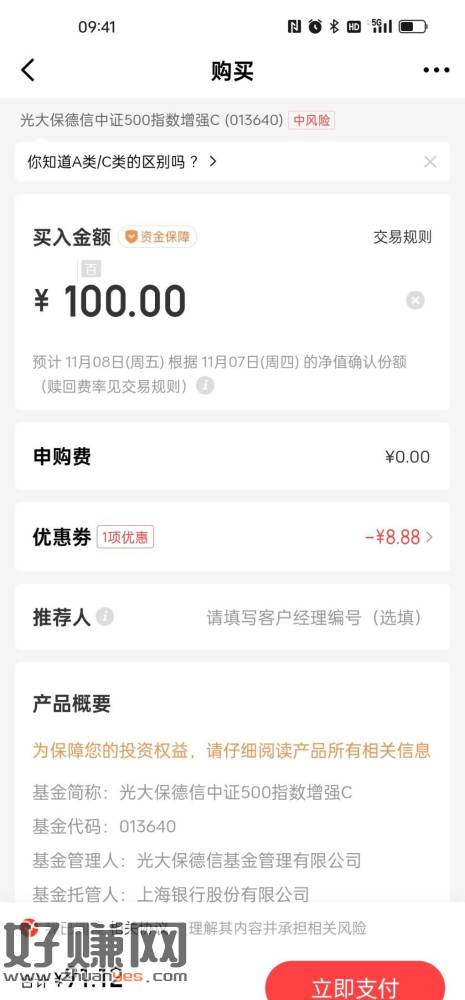 京东金融搜-光大保德信基金财富号,有张8.8,是100-8.8,我买了500指数增强,怕风险可以买90天债基