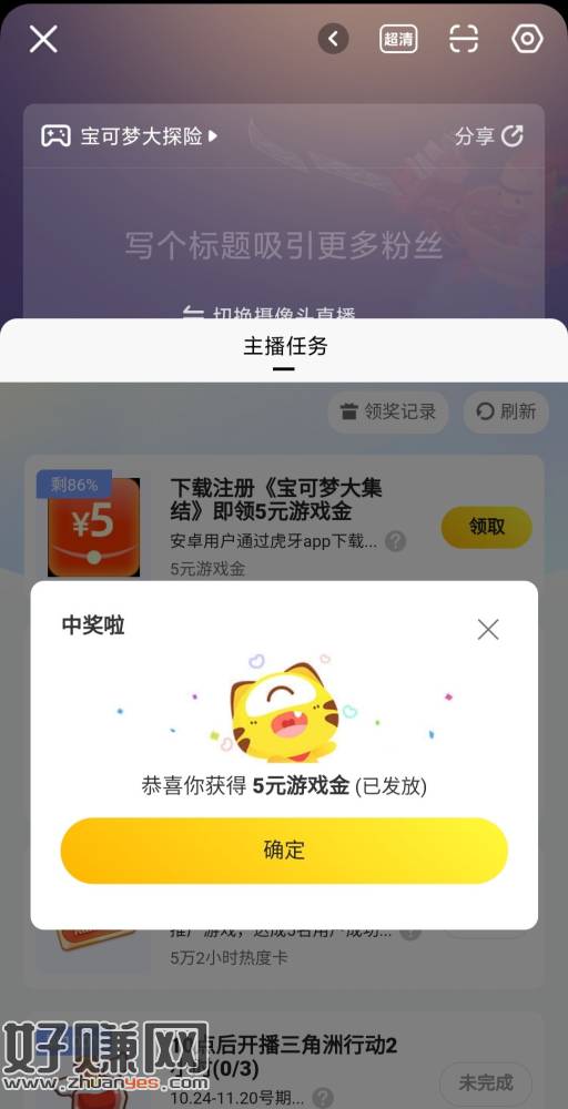 还有v也可以搞虎牙,老规矩v下完整包不安,虎牙下完整包安装,6+5+6qb+抖6,虎牙5在开播那还有百分之84,早上搞了领不到的也可以去刷新一下