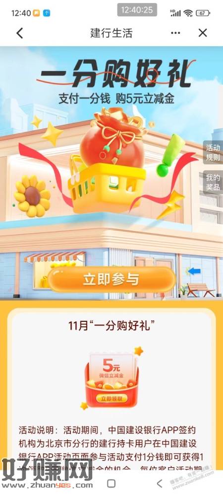 [ 建行北京 ]5元微信立减金