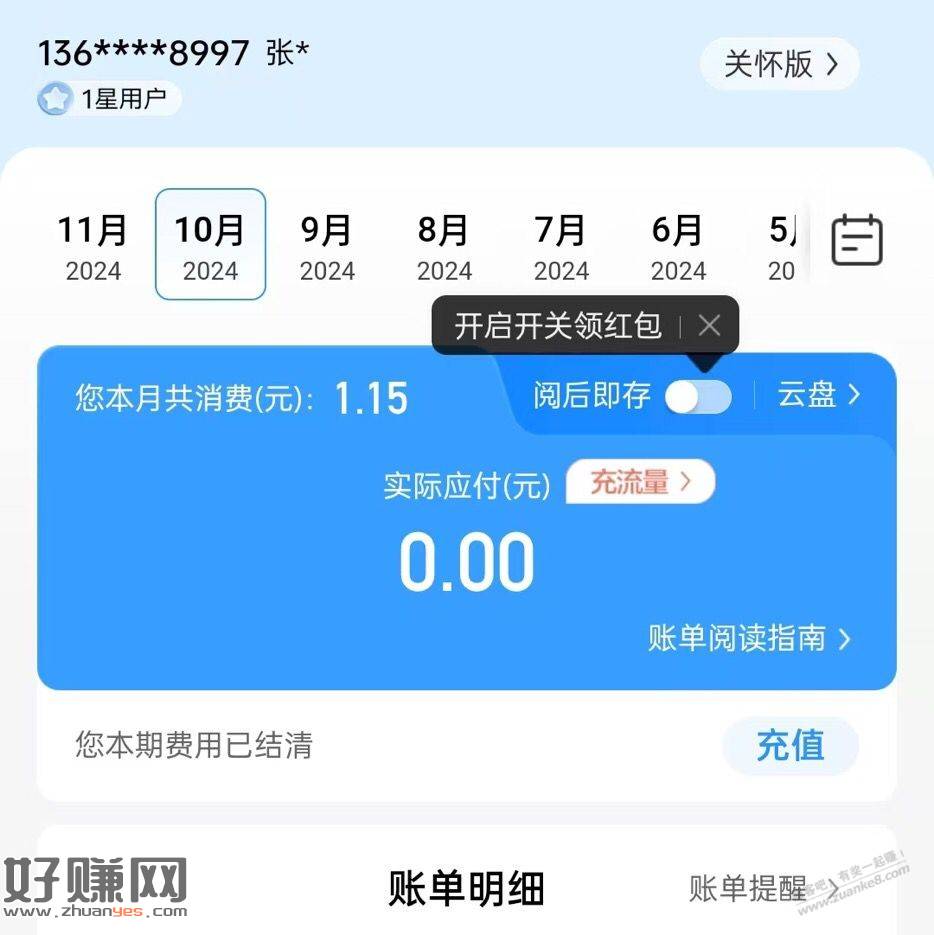 APP阅读账单 打开上面开关 我领到2元微信
