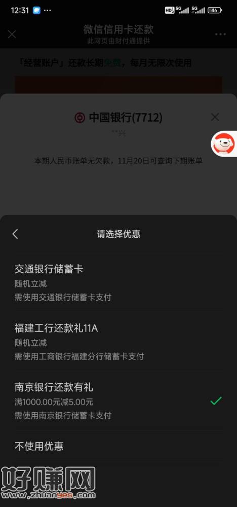 微信xing/用卡还款 南京银行1000-5 交通银行1000减2元以上