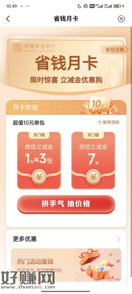 农行app-热门活动-最新上线-省钱月卡1元起,补了