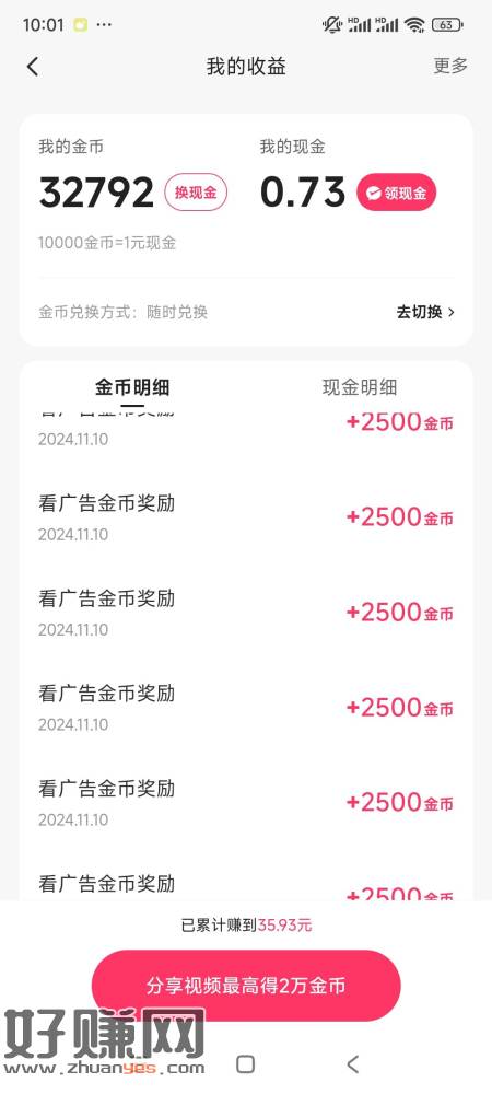 都去看看快手看广告,刚刚快手连续15个广告三万多金币