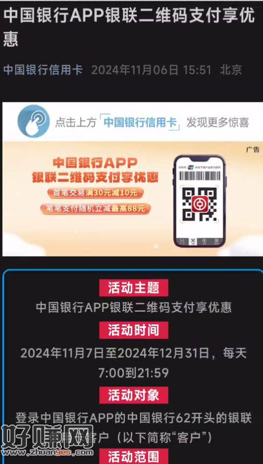 中国银行xing/用卡被扫30-10