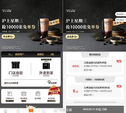 11点,沪上阿姨小程序,有免单券