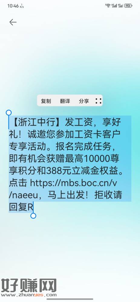 【浙江中行】发工资,享好礼!诚邀您参加工资卡客户专享活动。报名完成任务,即有机会获赠最高10000尊享积分和388元立减金权益。点击