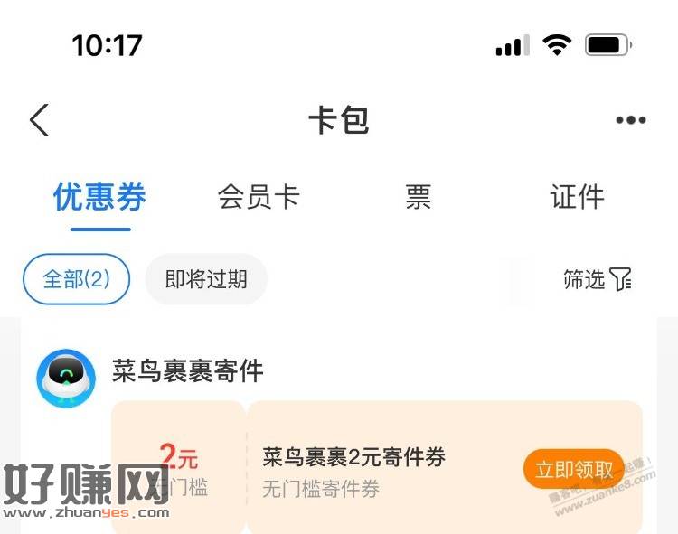 zfb -卡包-下拉推荐好奍 菜鸟5亓2亓寄件奍 反复进可多领