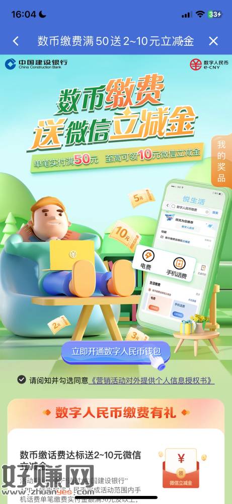 建行,生活缴费,数币缴费送微信立减金,满50送最高10立减金