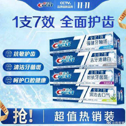 佳洁士 全优7效牙膏120g*3只+送40g,12.3