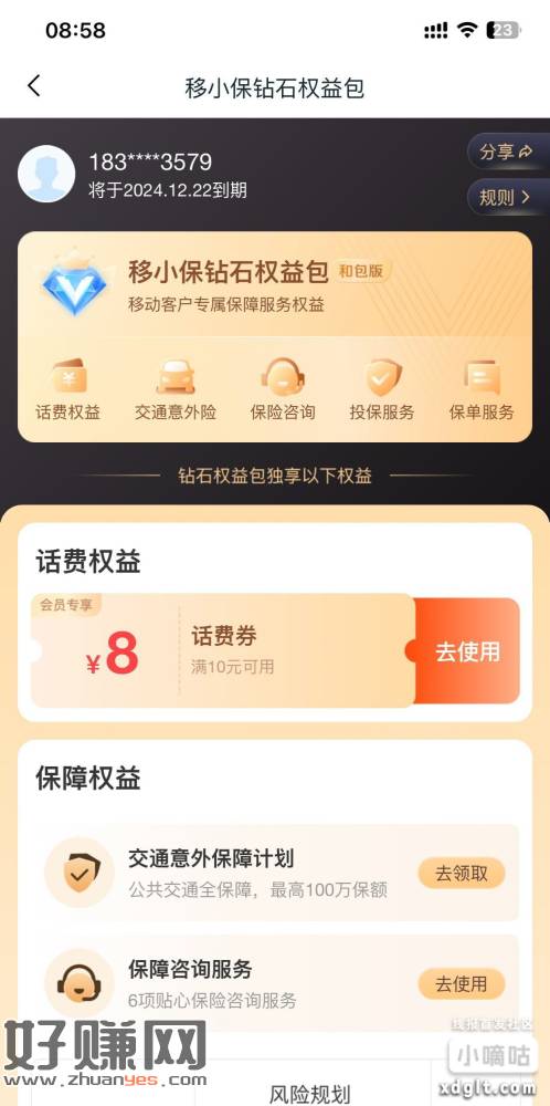 和包有定向积分的(不是通用积分)可以去开通移小包领8元话费,