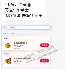 付宝自测丨 华莱士0.99汉堡+0亓方案