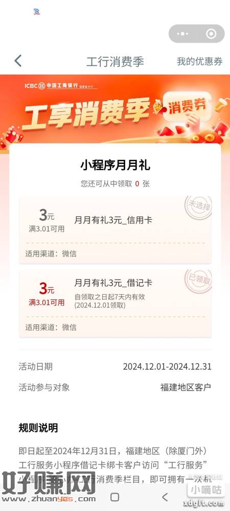 每月必撸,工行福建公众号,搜索工行服务然后搜索消费季