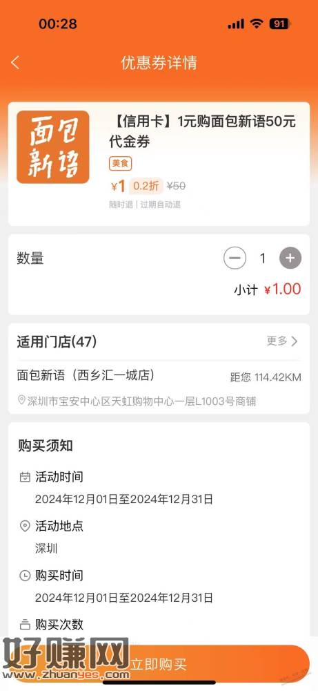 建行生活深圳xing/用卡,面包新语1购50