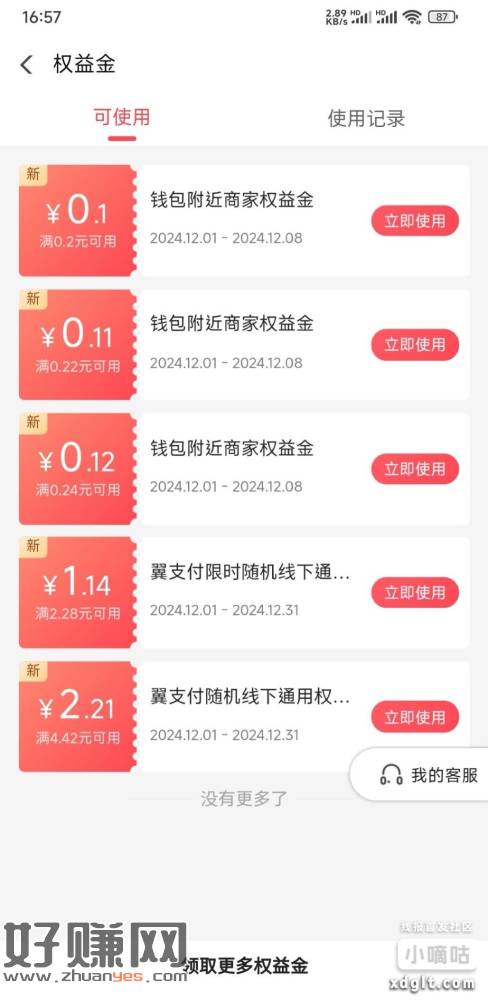 翼支付APP搜索附近好店--“尊享好券”右边的更多--点击“领取”,全部都领取吧,第一个商量权益金可以多领,然后扫自己的微信可出优惠
