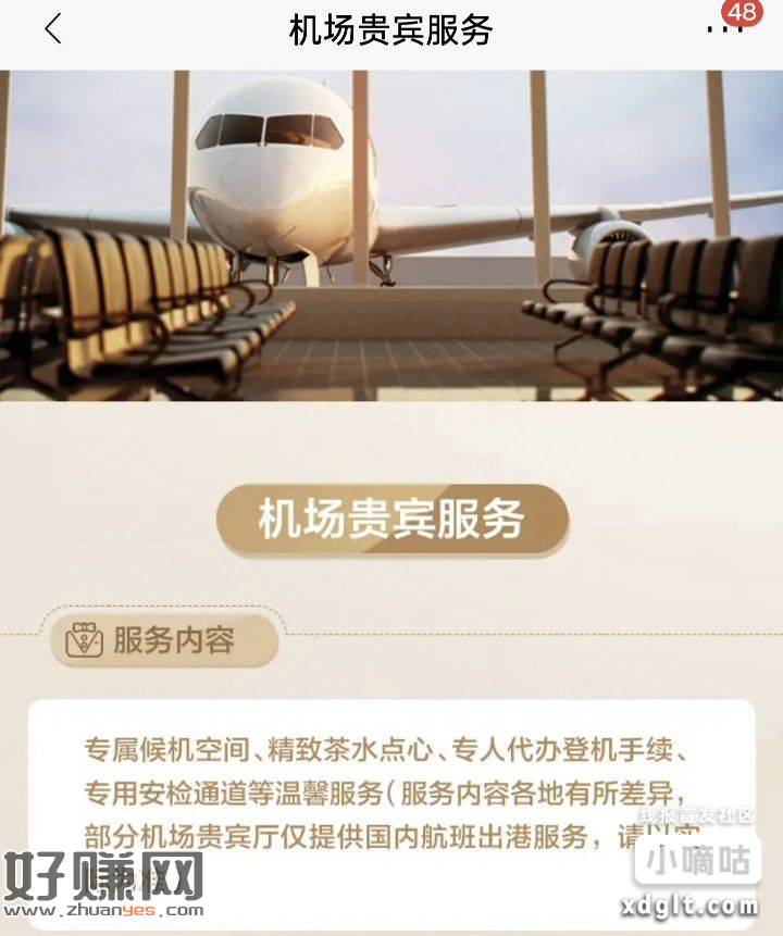 2.每年有免费接机,境内外机场贵宾厅的无限使用权。