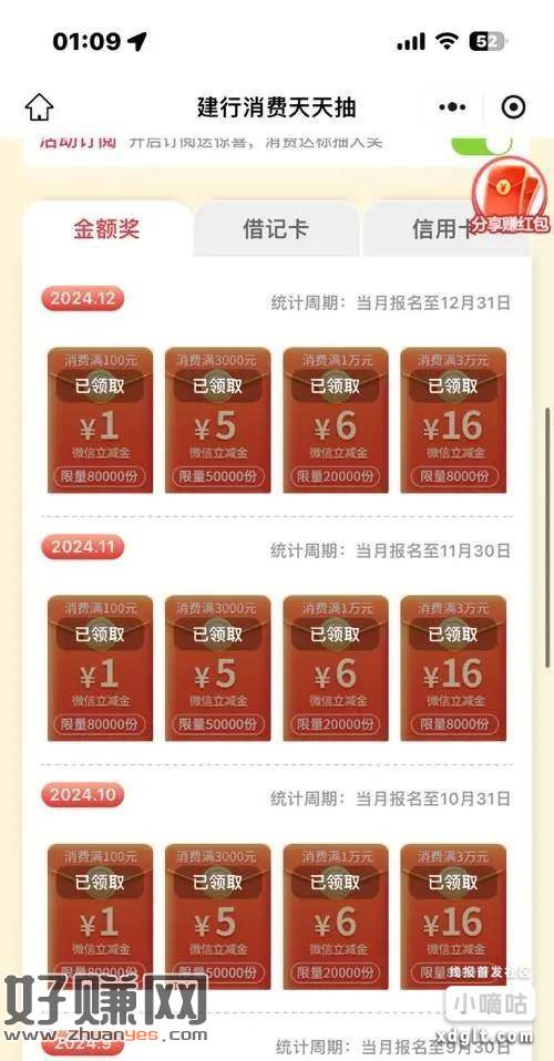 建行签到抽奖,1000积分抽奖大水喊一下!