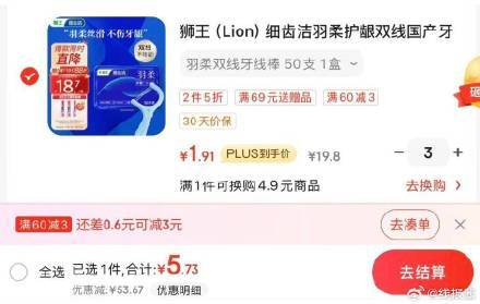 领劵中心59-20口腔劵 ,狮王Lion 牙线棒50支