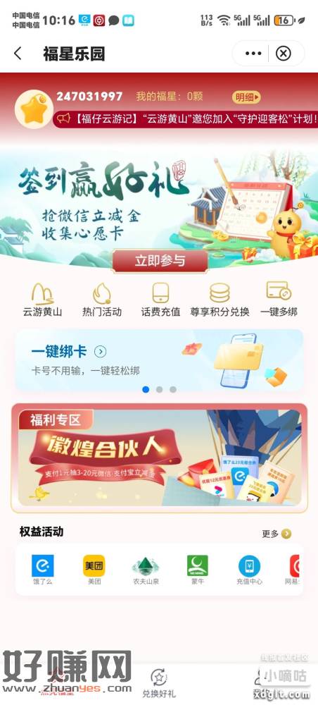 中国银行→福星乐园→福利专区一1元购十元微信立减金