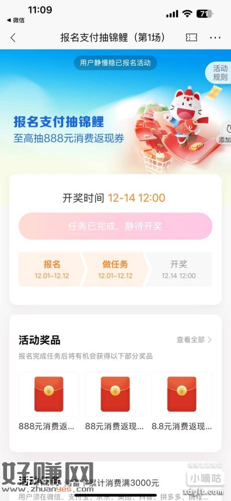 招商银行抽锦鲤活动,转3000到个人微信零钱通即可无损完成任务,坐等开奖