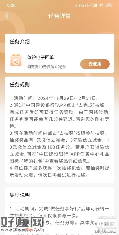 建行任务中心体验电子回单 点一下返回就能抽