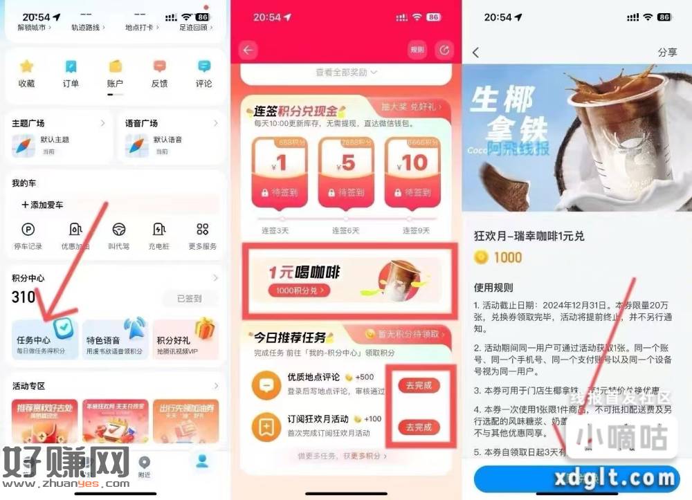 一块钱喝瑞幸,腾讯地图首页搜索评论随便找个店铺进去下拉评论3张图40字,随便打找两个店铺打完去我的任务中心领1000积分然后点卡劵换一块钱瑞幸,爱喝的去不爱喝憋着