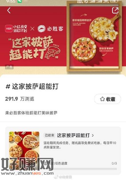 10点,小红书搜:这家披萨超能打,完成任务,有必胜客披萨券