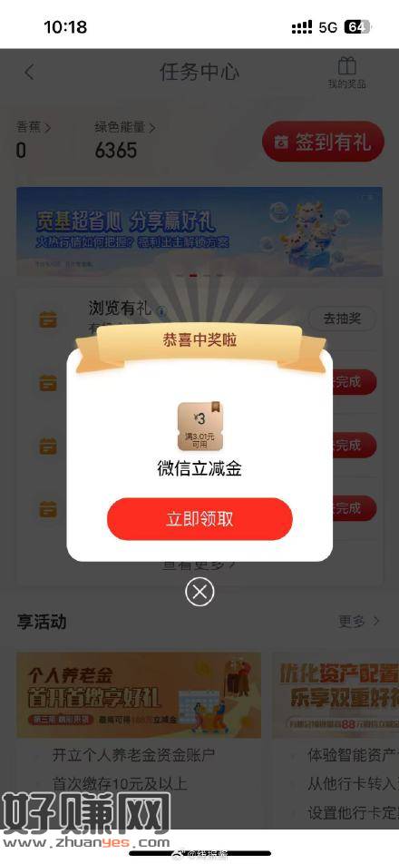工行兴农通APP-任务中心 充值浏览任务抽立减金