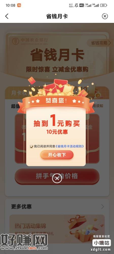 【中国农业银行】省钱月卡1元起购,最高立省9元!本月登掌银【热门活动】或戳 go.abchina.com/k/HBO 先到先得。拒收请回复R