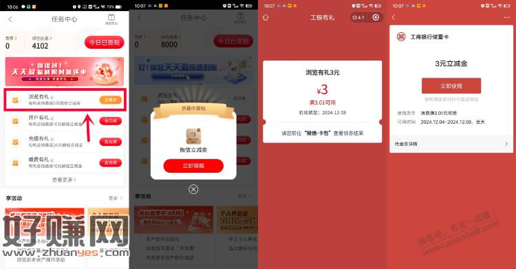打开兴.农.通APP,搜“任务中心”进去,点“浏览有礼”抽,刚中3元,非必中